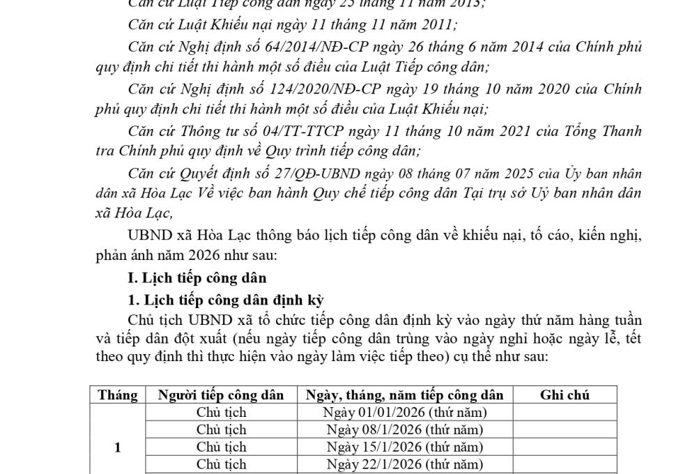 Ngày 01/4/2026, Ủy ban nhân dân xã Hòa Lạc tổ chức Lễ công bố và trao Quyết định tiếp nhận viên chứ