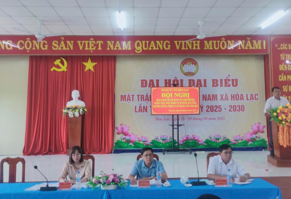 Ngày 06/10/2025, Đảng ủy xã Hoà Lạc tổ chức hội nghị Ban Chấp hành Đảng uỷ (mở rộng) kiểm điểm tình hình thực hiện nhiệm vụ chính trị 09 tháng đầu năm 2025 và đề ra phương hướng nhiệm vụ trọng tâm 03 tháng cuối năm 2025.