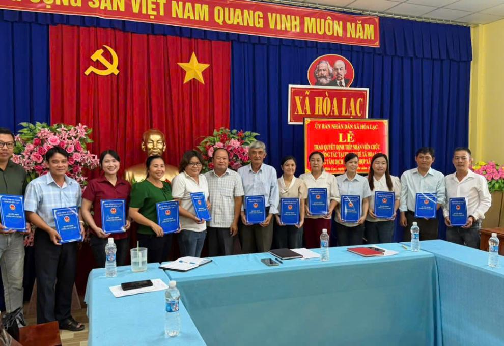 Ngày 01/4/2026, Ủy ban nhân dân xã Hòa Lạc tổ chức Lễ công bố và trao Quyết định tiếp nhận viên chức đến công tác tại Trạm Y tế xã và Trung tâm Dịch vụ tổng hợp xã.