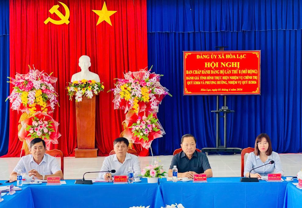 Ngày 01/4/2026, Đảng ủy xã Hòa Lạc tổ chức Hội nghị Ban Chấp hành Đảng bộ lần thứ 8 (mở rộng) nhằm đánh giá kết quả thực hiện nhiệm vụ chính trị quý I và đề ra phương hướng, nhiệm vụ quý II năm 2026.
