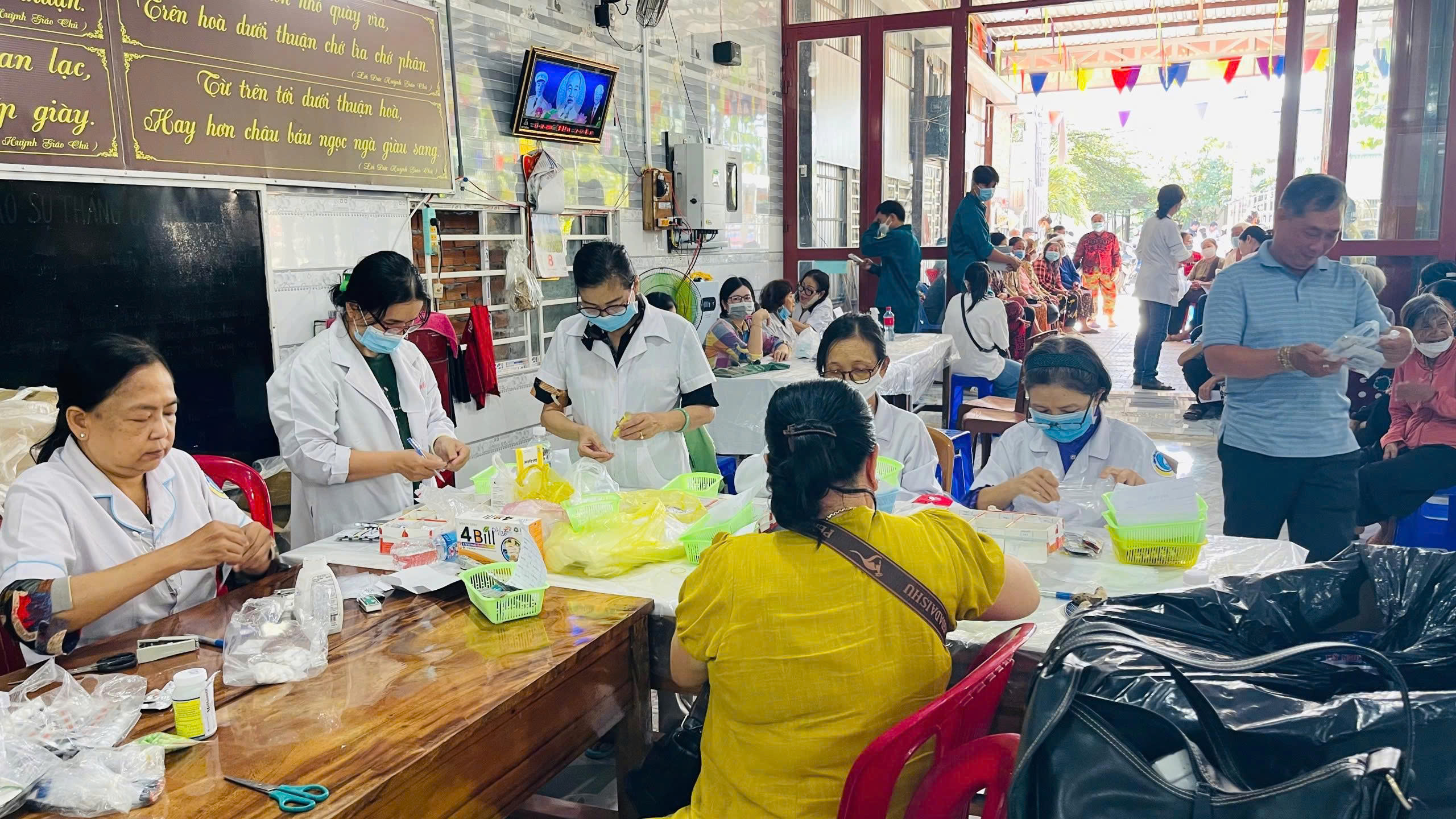 Đoàn khám chữa bệnh nhân đạo Thiện Nguyện tỉnh An Giang khám chữa bệnh cho người dân nghèo xã Hòa Lạc