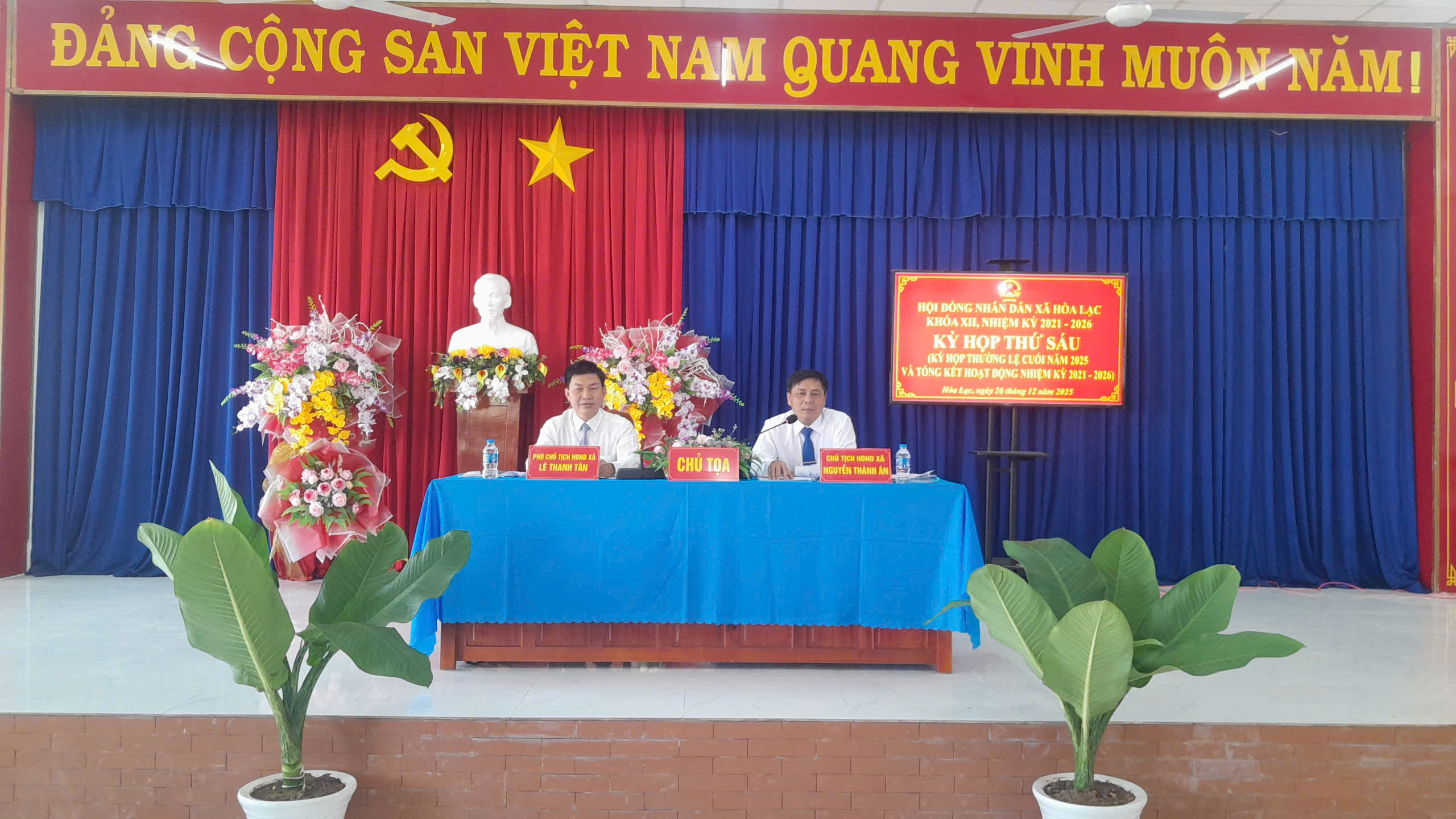 Ngày 26/12/2025, Hội đồng nhân dân xã Hòa Lạc, khóa XII, nhiệm kỳ 2021-2026 tổ chức kỳ họp thường lệ cuối năm 2025 và Tổng kết nhiệm kỳ 2021-2026. Ông Nguyễn Thành Ân – Bí thư Đảng ủy – Chủ tịch HĐND xã và ông Lê Thanh Tân – Phó Chủ tịch HĐND xã chủ trì kỳ họp. ĐnD XÃ VÀ ÔNG lÊ Thanh Tân – Phó chủ tịch HĐNd xã chủ trì kỳ họphoTham dự kỳ họp có ông Huỳnh Văn Hoàng – Phó Bí thư Đảng ủy – Chủ tịch UBND xã Hòa Lạc.