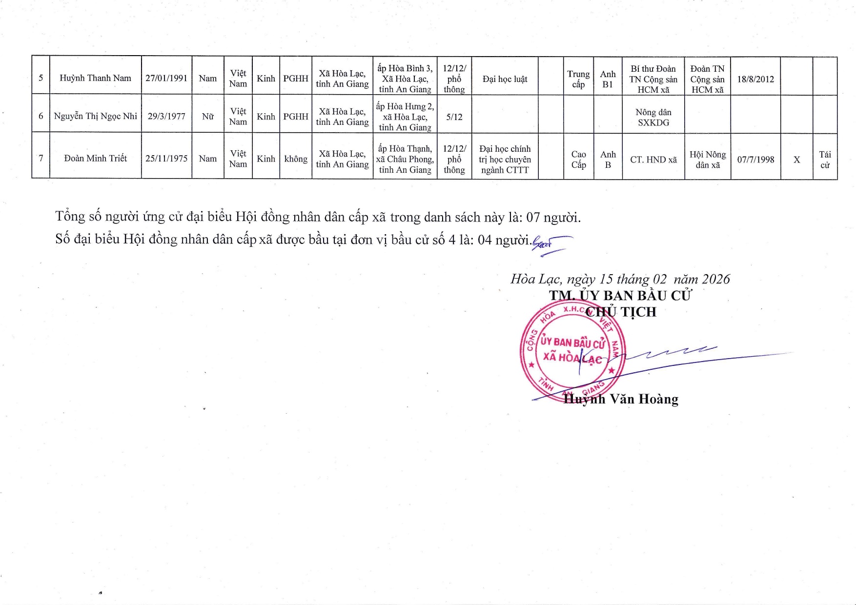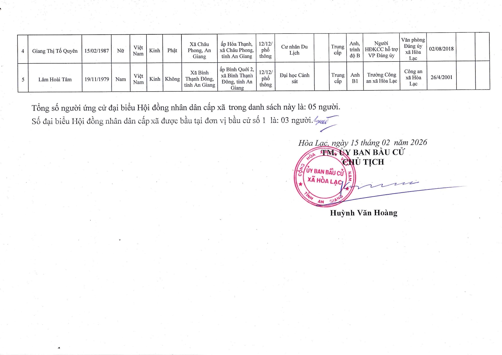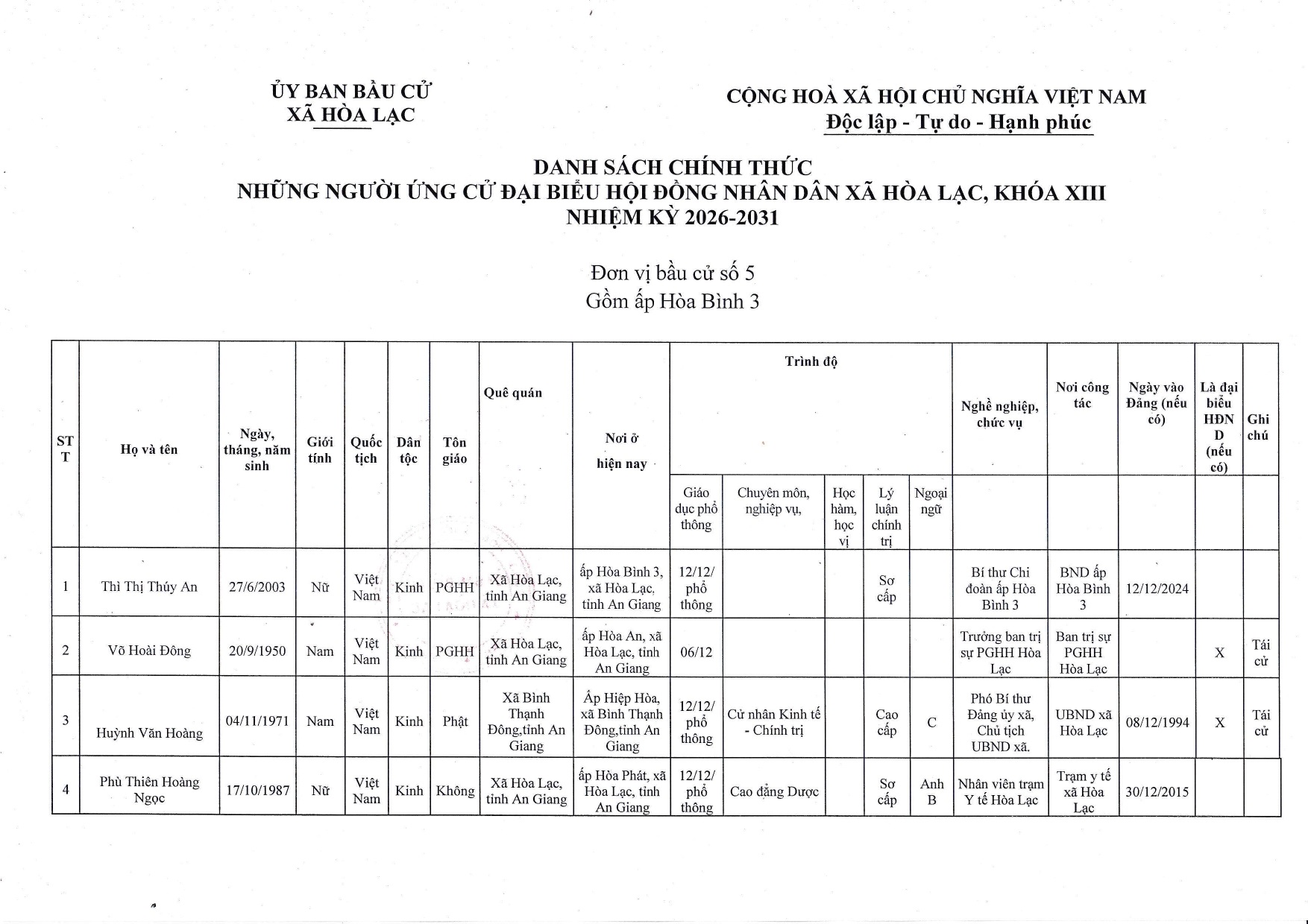 Nghị quyết công bố danh sách chính thức những người ứng cử đại biểu Hội đồng nhân dân xã Hòa Lạc nhiệm kỳ 2026-2031 theo từng đơn vị bầu cử