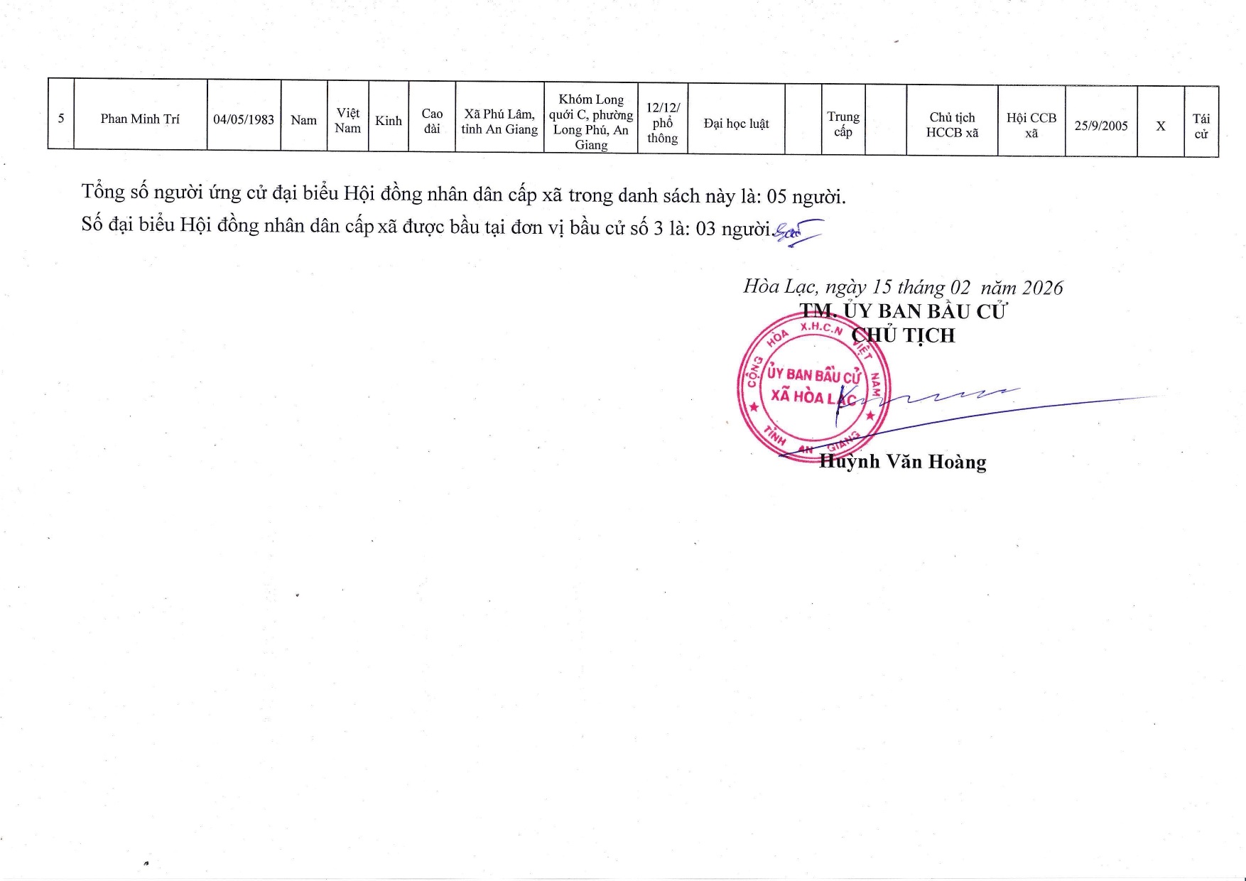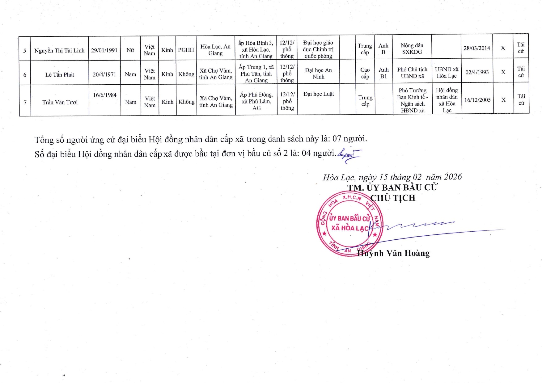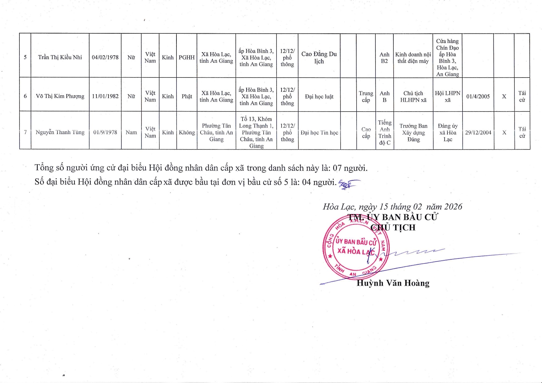 Nghị quyết công bố danh sách chính thức những người ứng cử đại biểu Hội đồng nhân dân xã Hòa Lạc nhiệm kỳ 2026-2031 theo từng đơn vị bầu cử