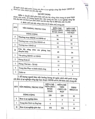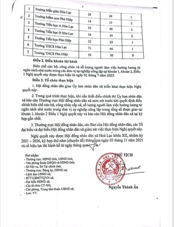 Nghị quyết quyết định biên chế cán bộ, công chức hưởng lương từ ngân sách Nhà nước trong các đơn vị sự nghiệp công lập xã Hòa Lạc