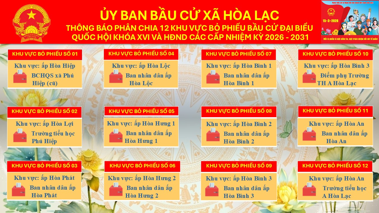 THÔNG BÁO PHÂN CHIA 12 KHU VỰC BỎ PHIẾU BẦU CỬ ĐẠI BIỂU QUỐC HỘI KHÓA XVI VÀ HĐND CÁC CẤP NHIỆM KỲ 2026 - 2031