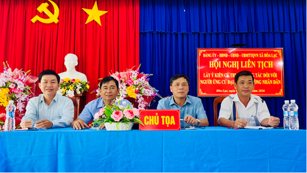 Ngày 07/01/2026, Đảng ủy – HĐND – UBND – Ủy ban MTTQ Việt Nam xã Hòa Lạc tổ chức Hội nghị Liên tịch lấy ý kiến cử tri nơi công tác đối với những người được giới thiệu ứng cử Đại biểu Hội đồng nhân dân các cấp nhiệm kỳ 2026 – 2031. Đồng chí Nguyễn Thành Ân – Bí Thư Đảng ủy xã Hòa Lạc chủ trì Hội nghị.